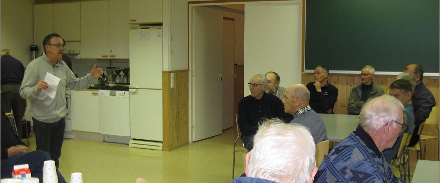 Opastajina seudun historiaan perehtyneitä kyläläisiä ja yritysten edustajia.