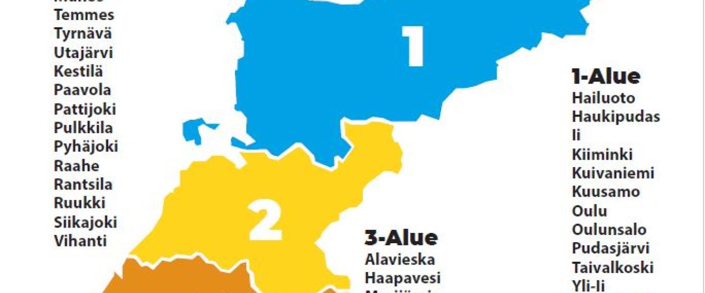 • Aluetoimintaa varten piiri on jaettu kolmeen toiminta-alueeseen (2025).