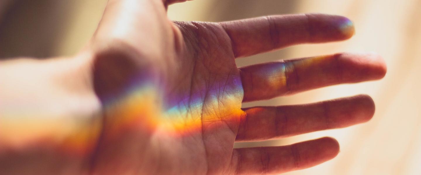 Käsi jossa näkyy sateenkaari