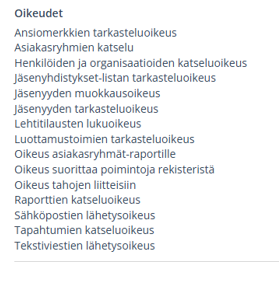 Jäsenrekisterinhoitajan ja sihteerin oikeudet: