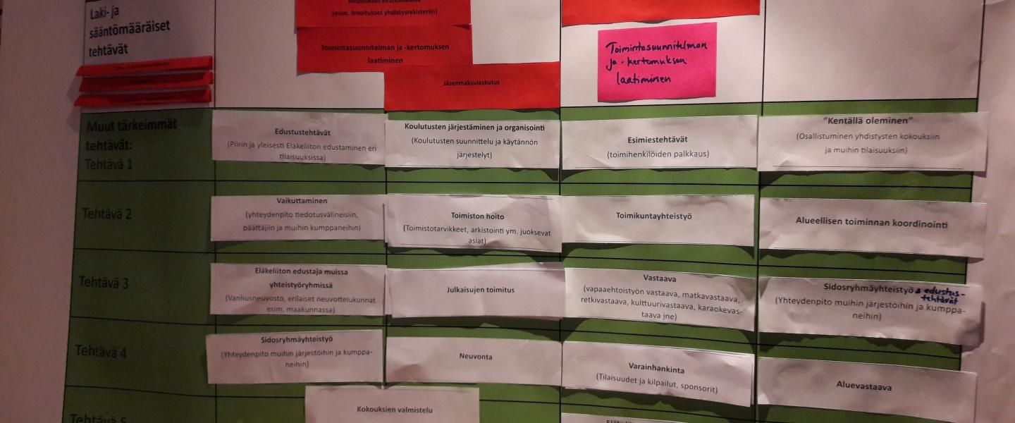 Eläkeliiton Etelä-, Keski- ja Pohjois-Pohjanmaan piirihallitukset, liittovaltuutetut ja yhdistyskehittäjät kokoontuivat yhdessä piirien vahvistamistilaisuuteen Kokkolassa 30.10.2018. Päivässä käytiin dialogikeskustelua liittyen piiriorganisaation tehtäviin tulevaisuudessa. Herätekeskustelun jälkeen lähdettiin määrittelemään viisi keskeisintä asiaa mitkä kuuluvat puheenjohtajalle, toiminnanjohtajalle, piirihallitukselle ja liittovaltuutetuille. Kaikkien 20 piirin tuotokset vedetään yhteen ja niistä tehdään käsikirja piireille.