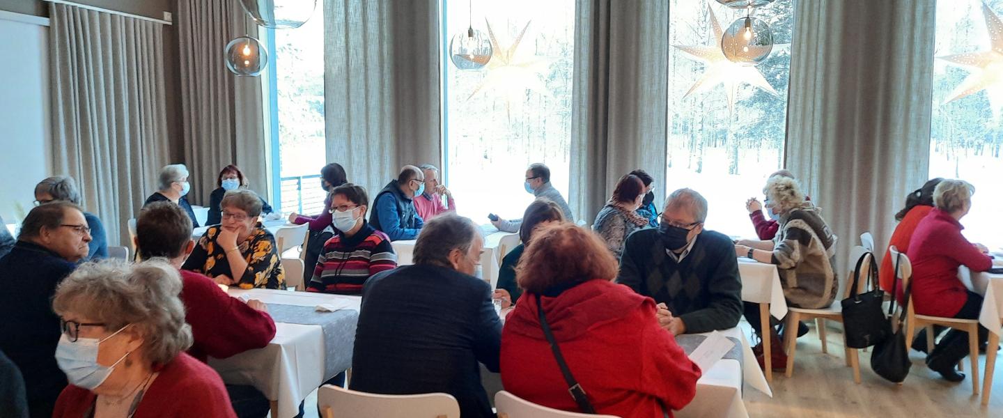 Eläkeliiton Keski-Pohjanmaan piiri piti sääntömääräisen syyskokouksensa 30.11.2021 Kannuksessa lounasravintola Rauhalan uudessa kokoustilassa. Kokouksen alussa laulukuoro Onnenonkijat virittivät paikalle saapuneet kokoustunnelmaan. Eläkeliiton liittovaltuutettu Heikki Koivisto ja piirin puheenjohtaja Pirjo Palosaari-Penttilä luovuttivat arvokkaan Eläkeliiton kultaisen ansiomerkin kannuslaiselle Seija Niemoselle hänen ansioistaan Eläkeliiton hyväksi, josta Seija kiitti persoonalliseen tapaansa lausumalla itse kirjoittamansa tontturunon.