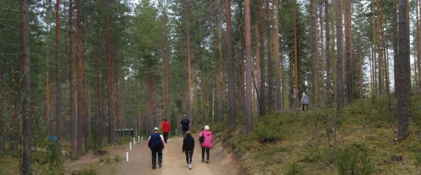 ulkoilijoita metsäpolulla