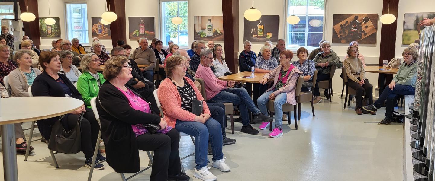 Kuvassa olemme kuulemassa esittelyä toiminnasta ja tiloista Pramian tehtaanmyymälässä. Muitakin tutustumiskohteita meillä oli matkallamme mm. Jokipiin Pellava, Juustoportti ja Pirunpesä