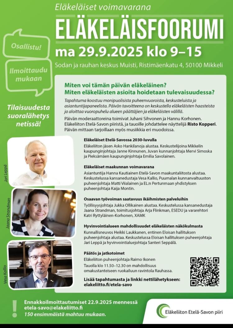 Eläkeläisfoorumi 29.9.2025 klo 9 - 15