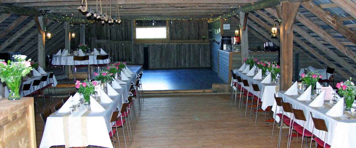 Pidimme yhteistä juhlaamme Kiihtelysvaaran uusitun navetan ylisillä.