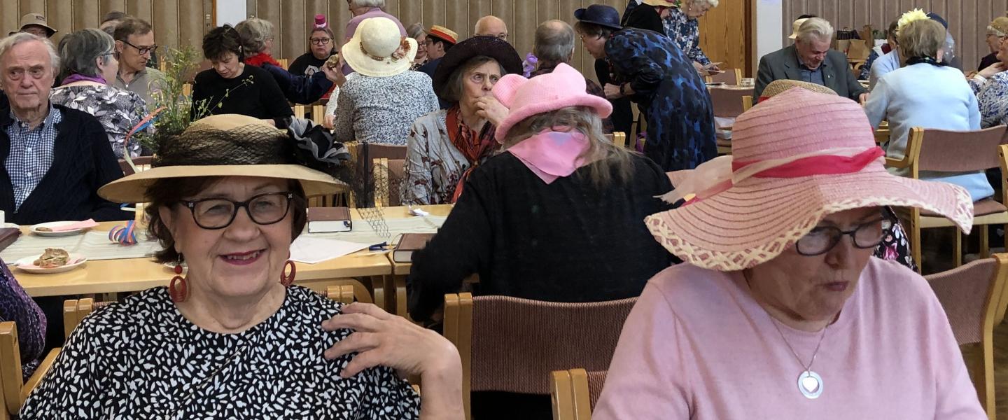 Emäntäryhmää kiitettiin vappuhenkisen kattauksen järjestämisestä, ja hattujuhlan perinteinen suvivirsi laulettiin.