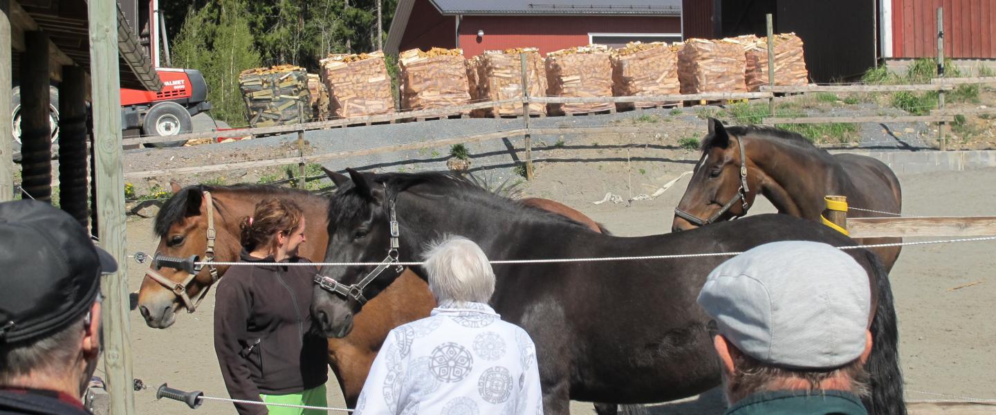Tarinatuvan aiheena olivat hevostarinat. Kysymykset heräsivät, kun tukinajossa reellä ollut hevonen kaatui selälleen puunajossa. Ihmisvoimin se piti auttaa ylös. Myös kyntöhommat yhdellä tai parihevosella olivat normitöitä, kun traktoreita ei ollut. Eräs hevonen hamuili pikkupojan taskuista ruisleipäpaloja aina, kun vako oli aurattu ja kiersipä vielä seuraavan alkuunkin, kun tiesi herkkupaloja olevan tulossa. Hevosen ja pienen pojan yhteistyö oli käsin kosketeltavaa.