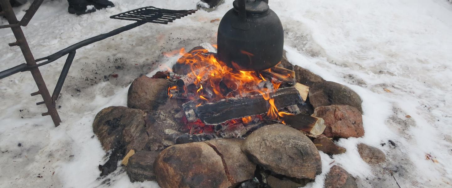 Myynnissä kahvia, pullaa, virvokkeita, makkaraa ja arpoja.