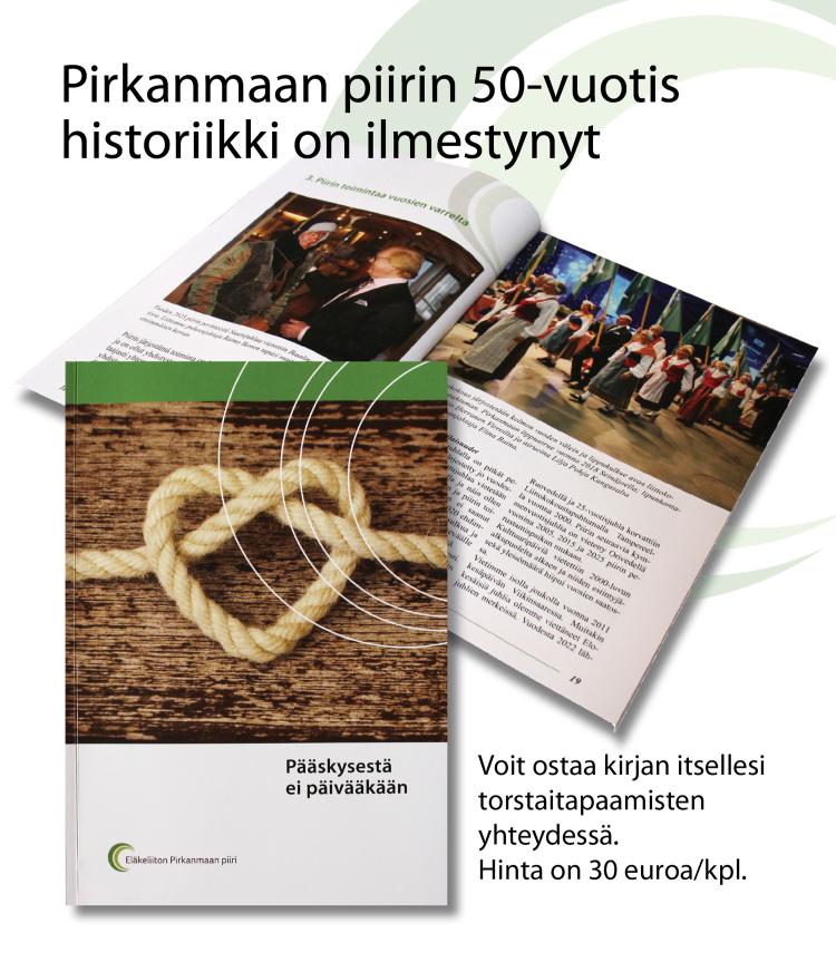 Eläkeliiton Pirkanmaan piirin historiikki on ilmestynyt. Saatavissa seuraavassa torstaitapaamisessa. Hinta on 30 euroa/kpl.