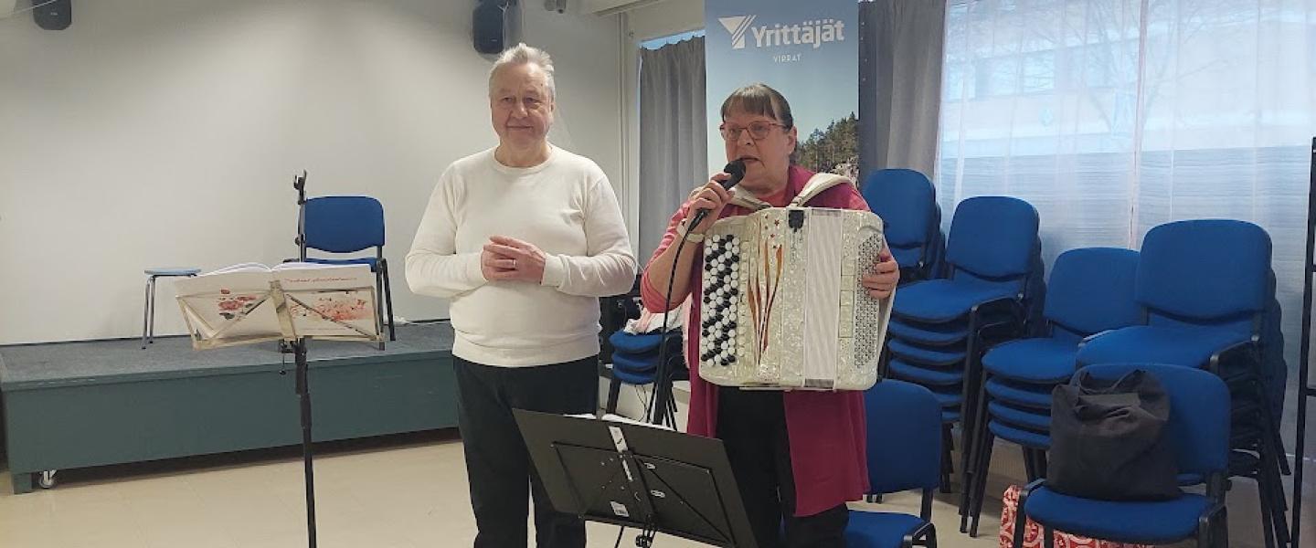 Elvi-kerhossa 27.1. nautittiin musiikista, jota meille tarjoili Sirke-duo eli Sirpa Olkinuora ja Keijo Papinsaari EL:n Ruoveden yhdistyksestä. Heidän johdollaan, Keijo Papinsaaren toimiessa esilaulajana, saimme yhdessä laulaa tuttuja lauluja ihan sydämiemme kyllyydestä ja kuulla Sirpa Olkinuoran taidokasta harmonikkamusiikkia. Paikalle olikin saapunut ilahduttavan runsas joukko kerholaisia.