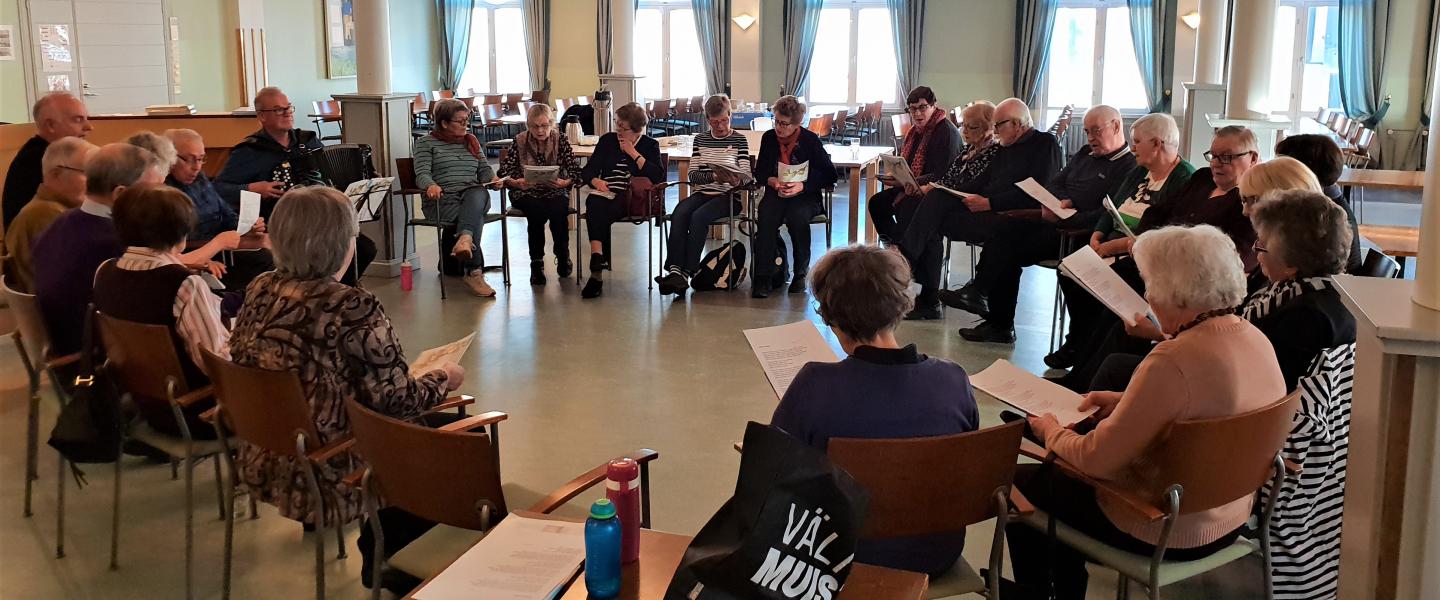 Vetäjänä Kirsti Helander p.0400667709. Ei ennakkoilmoittautumista. Kaikki ovat tervetulleita! Lauluryhmät voivat käydä esiintymässä hoito- ja palvelukodeissa. Mukaan voit tulla, vaikka et halua osallistua näille vierailuille.